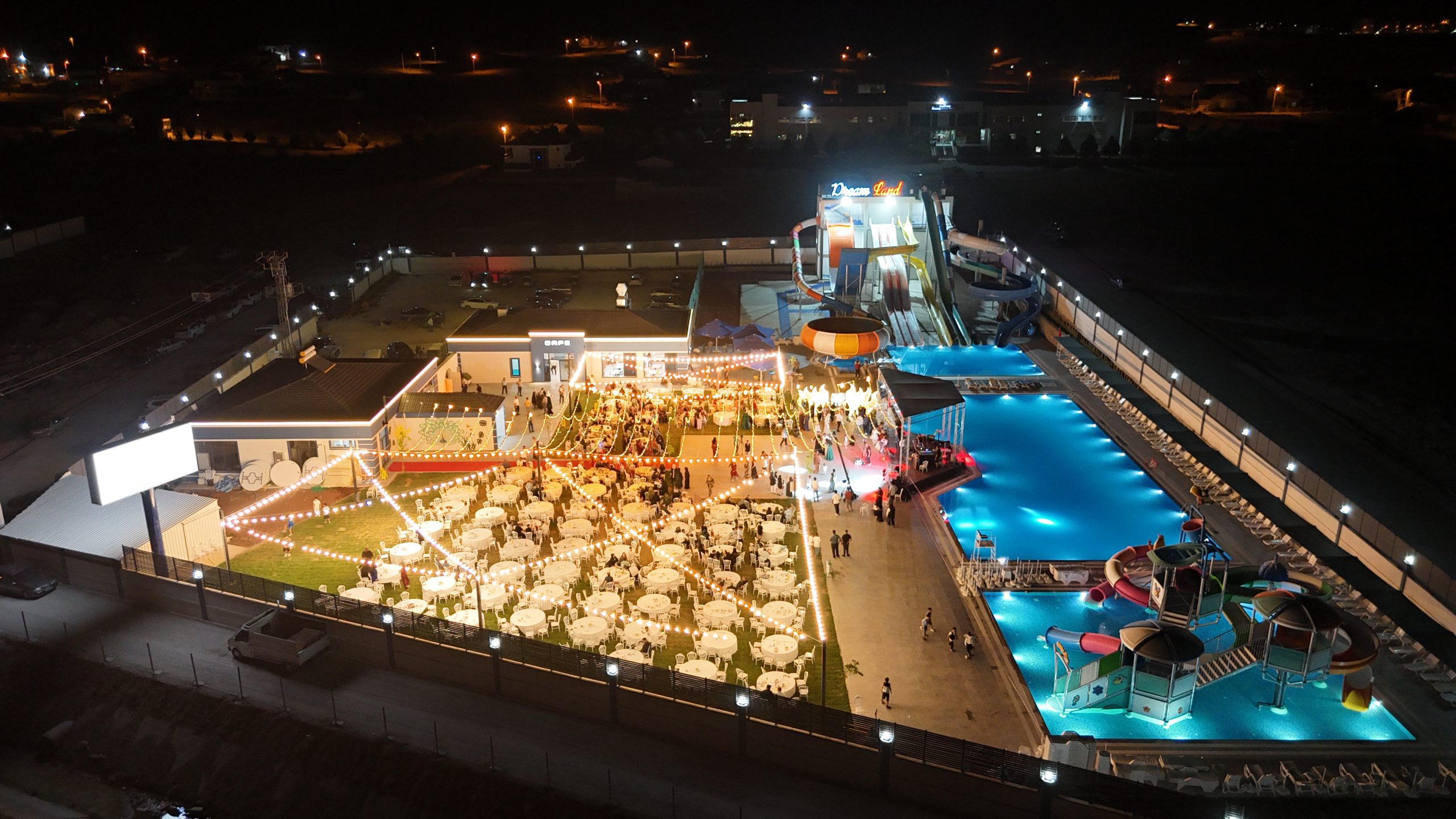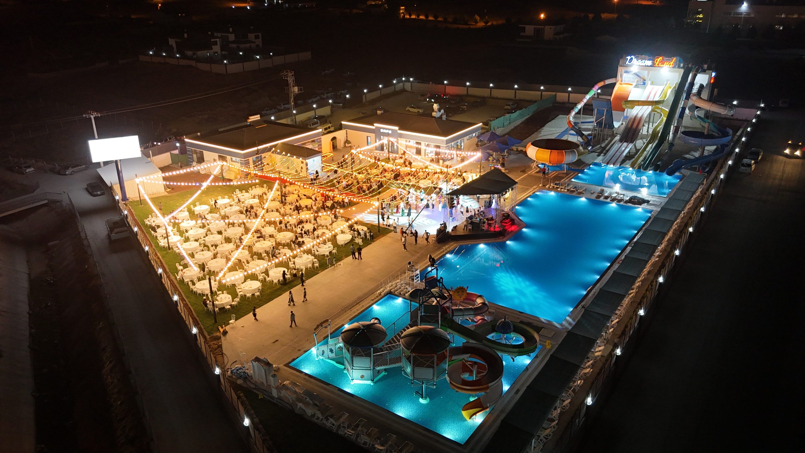 Dream Land Aqua Park eşsiz atmosferi, geniş alanı ve ferah yapısıyla sadece bir eğlence merkezi değil, aynı zamanda unutulmaz organizasyonlara ev sahipliği yapan özel bir mekân. Doğayla iç içe yapısı ve modern olanakları sayesinde özellikle kalabalık düğünler için Aksaray’da öne çıkan lokasyonlardan biri haline gelmiştir.